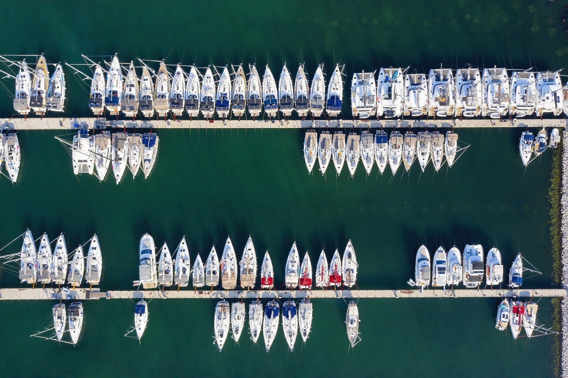 Marina Kornati se sastoji od tri međusobno povezana dijela: sjeverni, zapadni i južni dio. Marina se proteže na 39 688 m2 kopnene površine i 91,912 m2 morskog akvatorija. U centralnom ili sjevernom akvatoriju nalazi se 435 vezova od koji je 70 na suhom vezu u sklopu servisne zone, u zapadnom akvatoriju se nalazi 190 vezova, dok južni akvatorij može smjestiti 80 plovila.