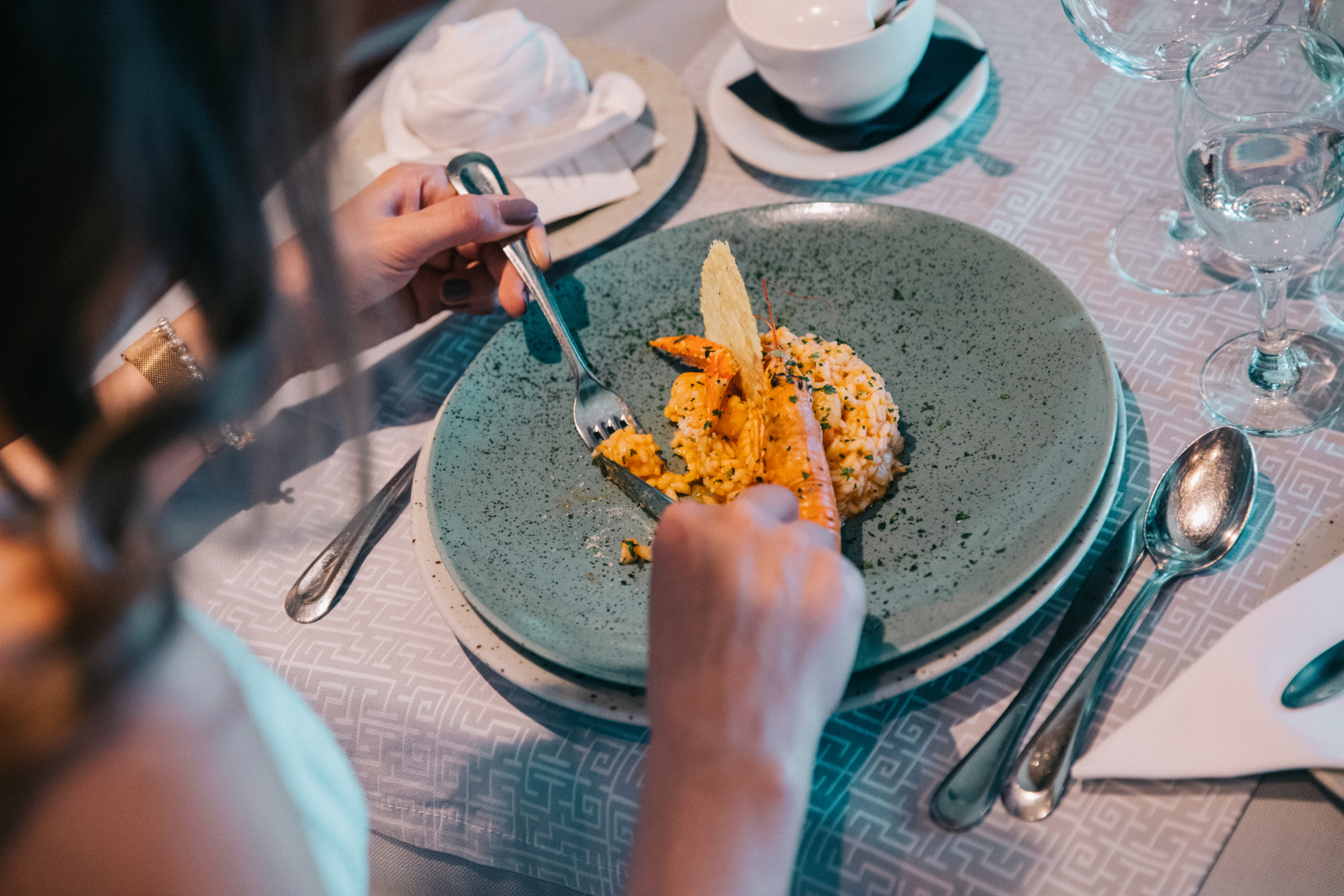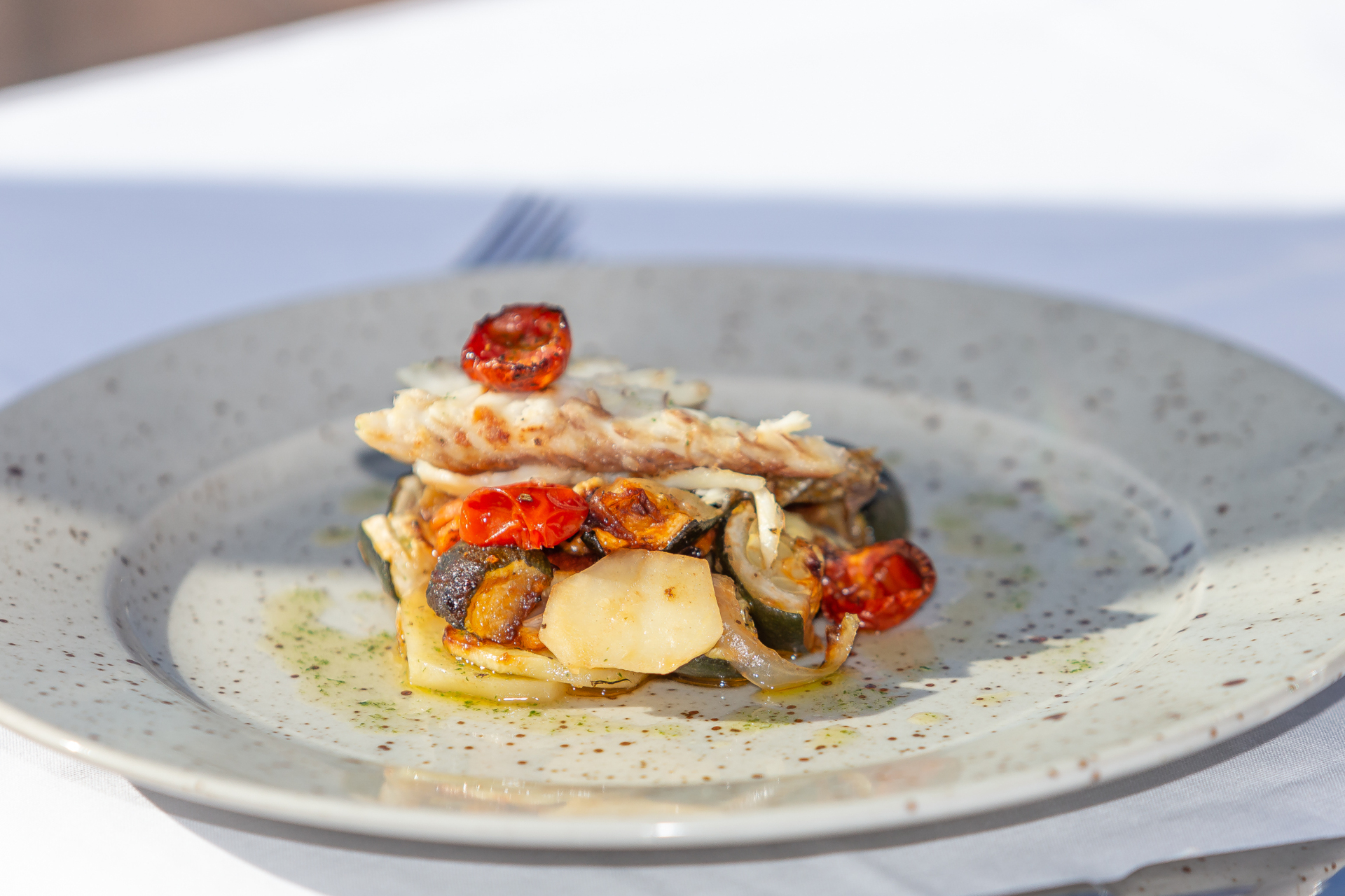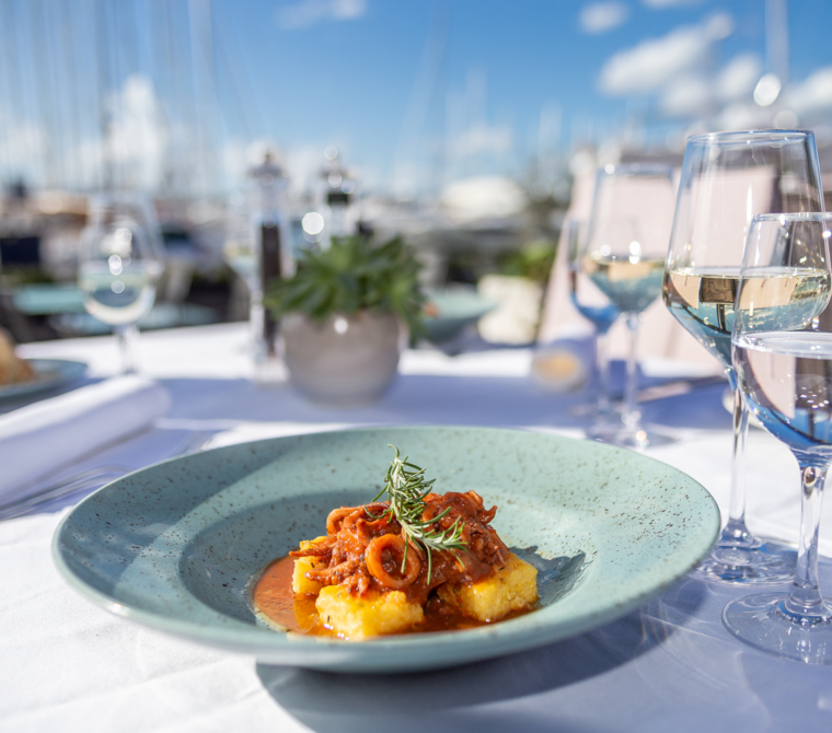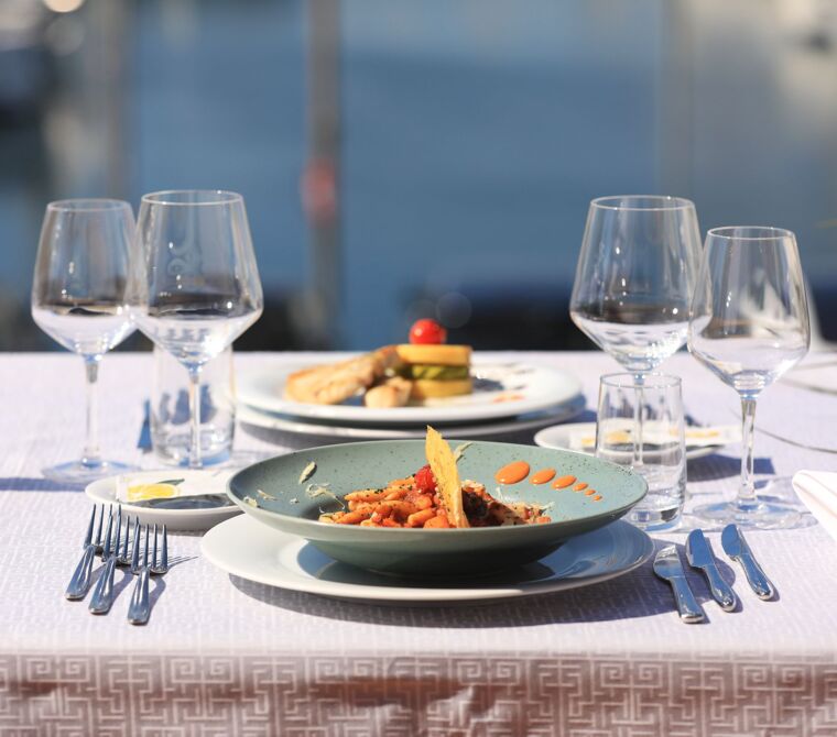 Naša kuhinja temelji na svežih, lokalnih sestavinah – od rib in morskih sadežev do domačih testenin in izbranih mesnih specialitet. Poudarek je na mediteranski kuhinji, ki je skrbno prilagojena okusom gostov z vsega sveta.